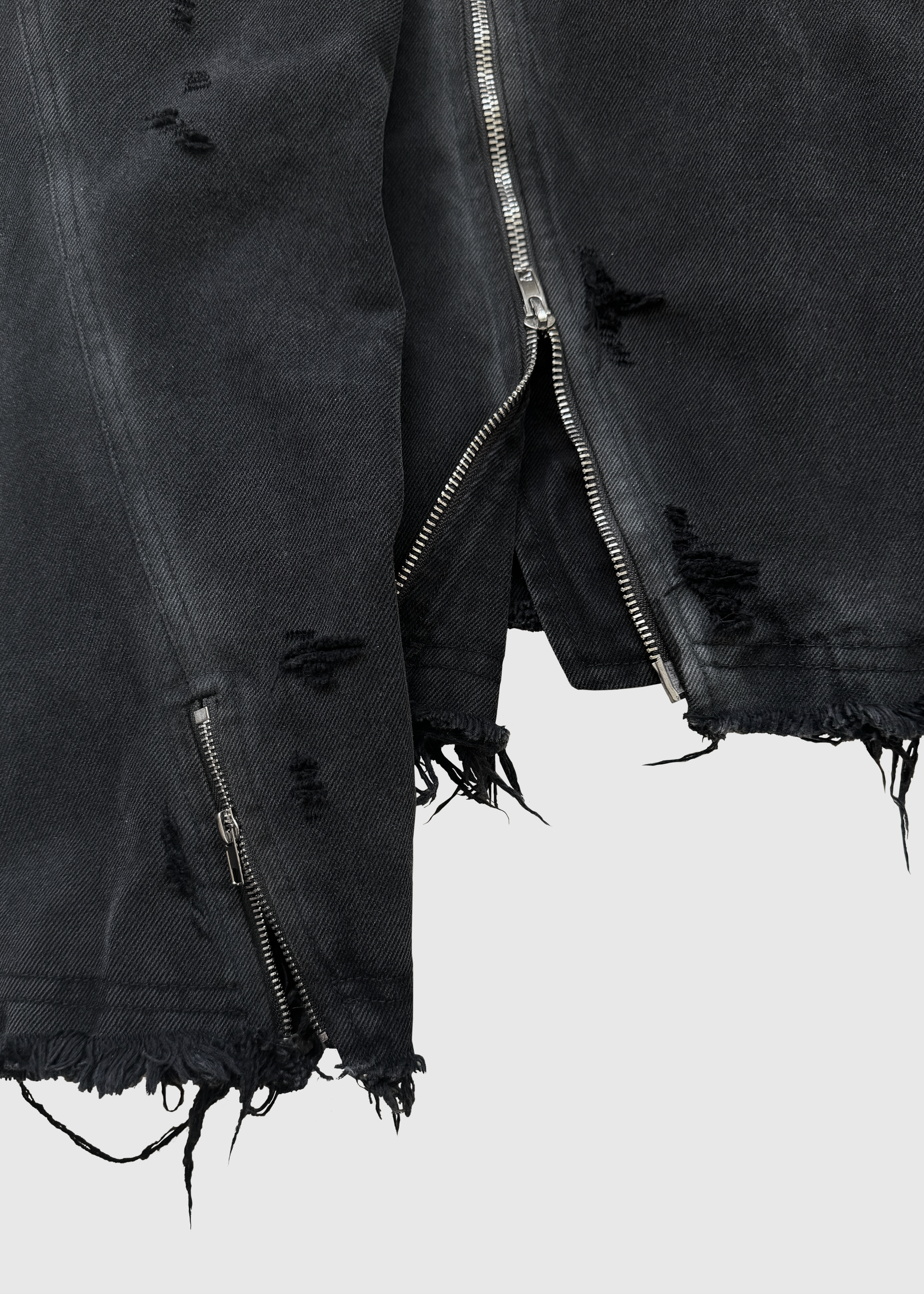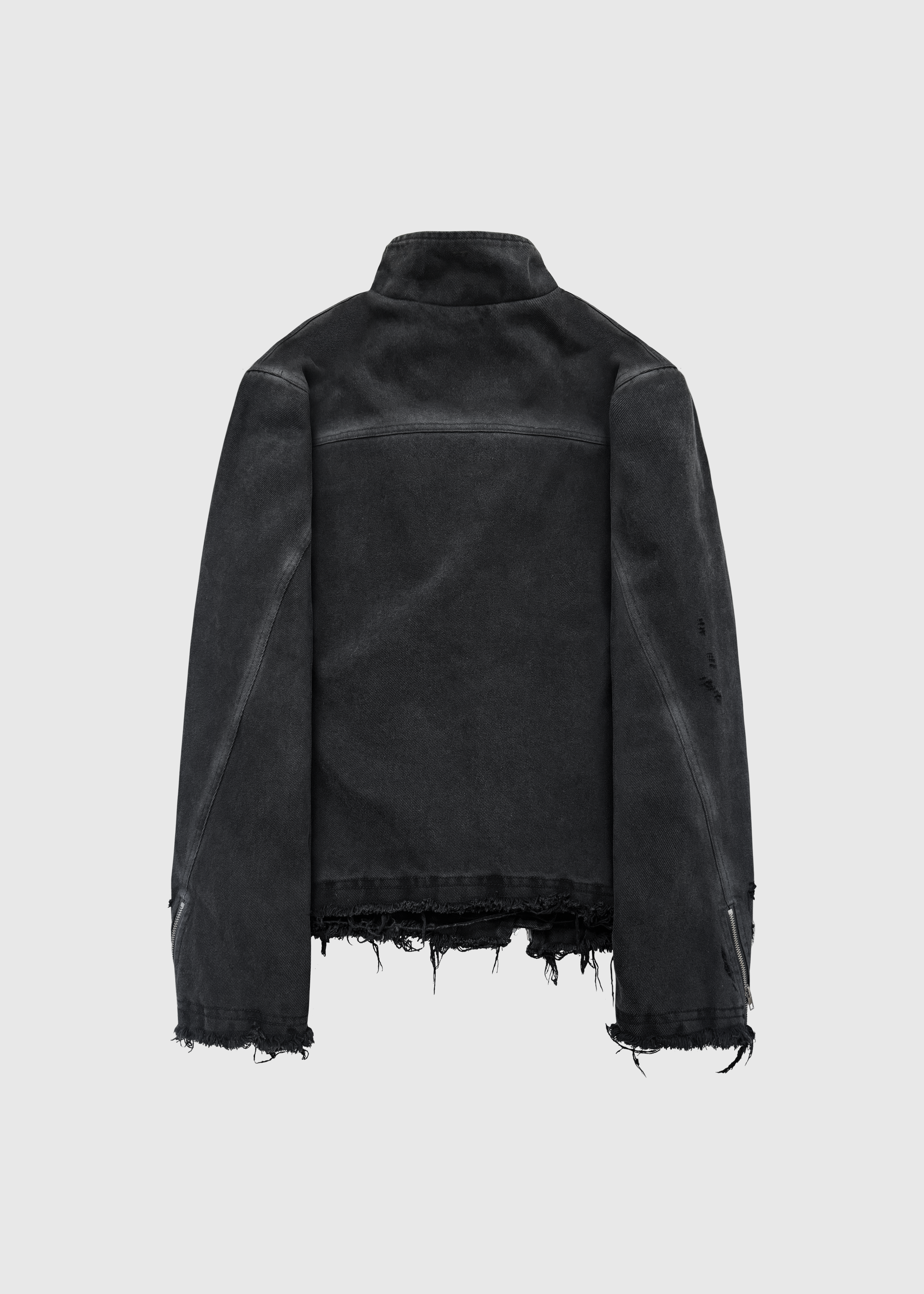 The Frayed Asym Jacket is pre-made, please allow 1 week to ship.